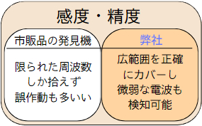 市販の盗聴・盗撮発見器は手軽に見えても、感度が低く重要な信号を逃しやすく、携帯電話やWi-Fiなどに誤反応して混乱を招きがちです。